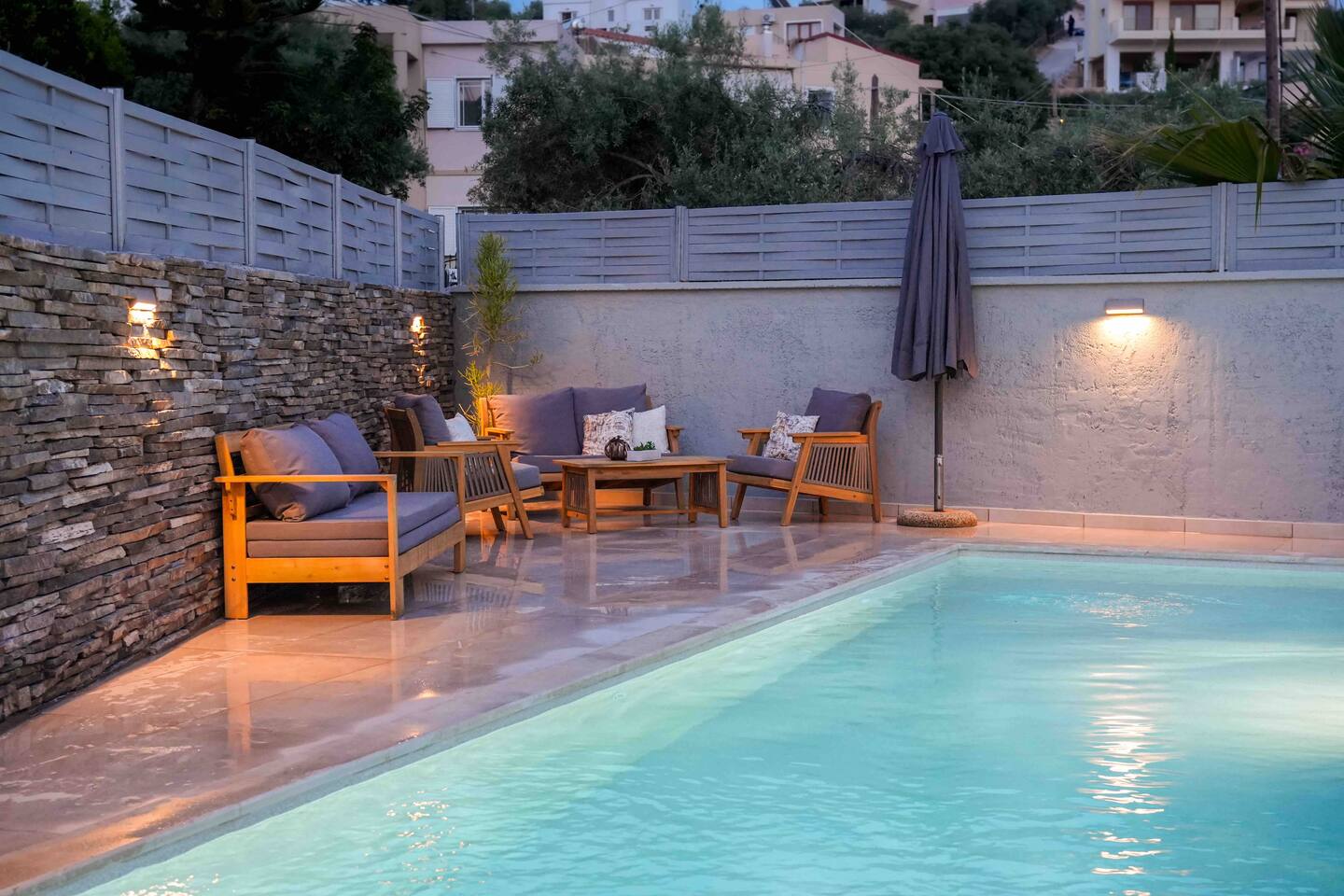 A house with special architecture, comfortable and with careful details and aesthetics just 5 minutes from the center of Chania and 3 minutes from a seaside area of Agioi Apostoli with unique bays for exploring, diving, sports activities and good food.